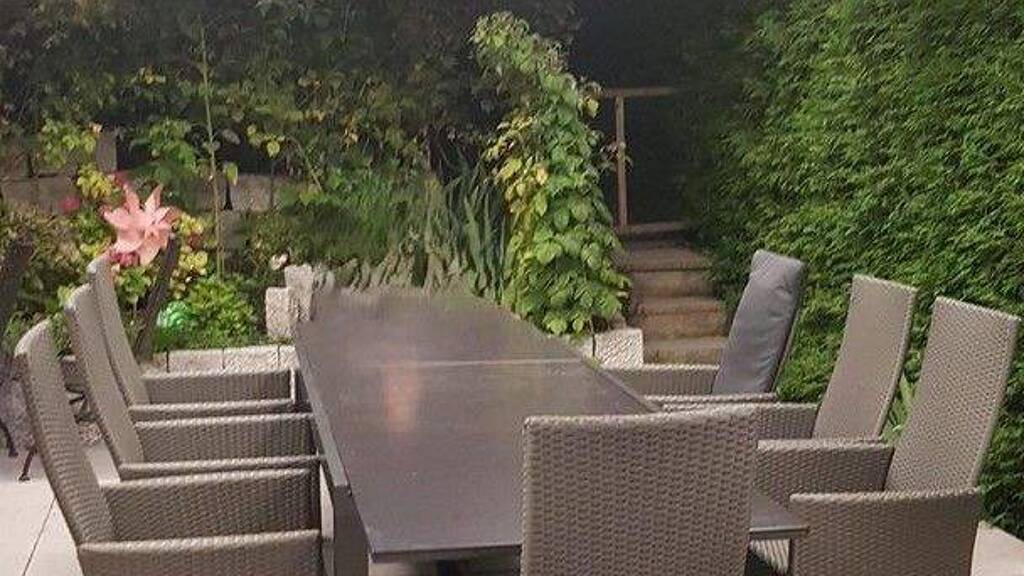 Die Terrasse ist ca. 30qm groß und befindet sich ein Stockwerk tiefer.