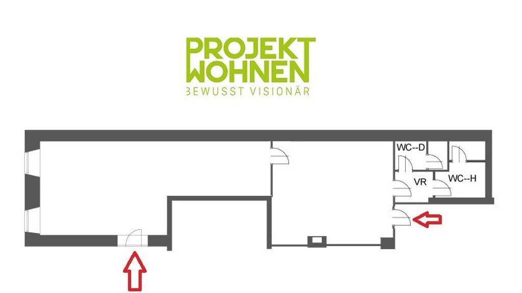 Die Immobilie befindet sich im Erdgeschoss eines historischen Altbaus und bietet durch zwei separate Eingänge eine flexible Raumaufteilung. Der erste Raum, mit direktem Zugang von der Straße, profitiert von der hohen Fußgängerfrequenz und eignet sich hervorragend als Verkaufsfläche oder Ausstellungsraum. Der zweite Raum, ruhig zum Innenhof gelegen, bietet eine ideale Ergänzung für Bürozwecke oder Lagerflächen.