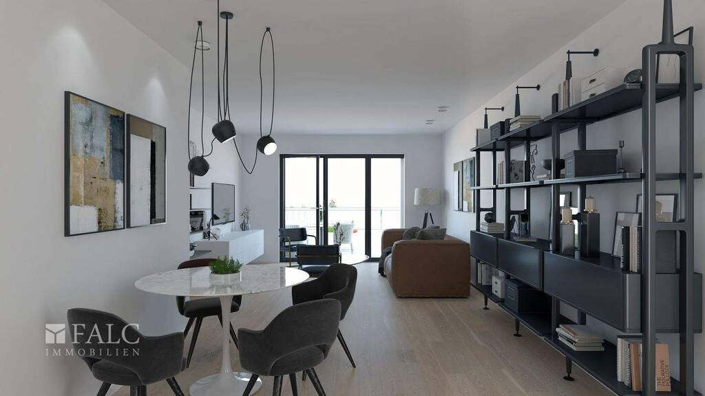 Im obersten Geschoss dieses modernen Neubaus erwartet Sie ein besonderes Wohngefühl. Die Wohnung liegt angenehm seitlich zur Straße und bietet einen sonnigen Westbalkon. Der Mittelpunkt des Lebens ist der großzügige, offene Wohnbereich mit direktem Zugang zur Dachterrasse - perfekt, um den Tag entspannt ausklingen zu lassen. Die angrenzende Küche fügt sich harmonisch in das Raumkonzept ein und schafft eine offene, einladende Atmosphäre. Zwei Schlafzimmer sowie ein angrenzendes Badezimmer bieten Rückzugsmöglichkeiten und Komfort. Ein echtes Highlight ist die Galerieebene: Rund 30 m² zusätzliche Wohnfläche, ergänzt durch ein weiteres Badezimmer und einen praktischen Abstellraum, eröffnen Ihnen vielseitige Nutzungsmöglichkeiten.