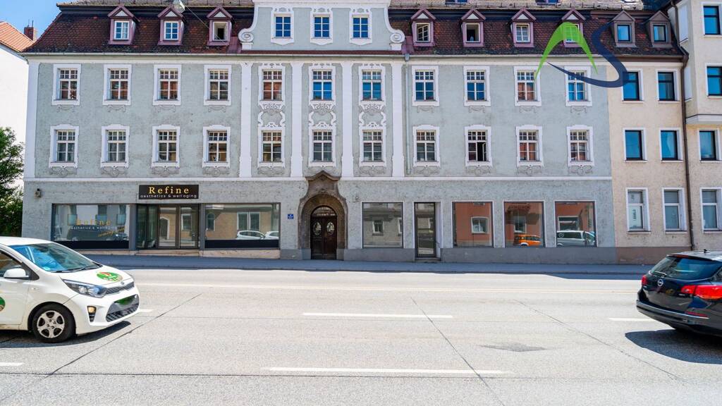 Die großzügige Laden-, bzw. Praxisfläche befindet sich im Erdgeschoss eines unter Denkmalschutz stehenden Mehrfamilienhauses.