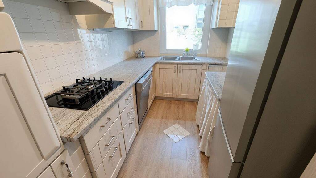 Das frisch renovierte Badezimmer lädt zum Entspannen ein und die hochwertige Einbauküche lässt das Herz jedes Kochliebhabers höherschlagen.