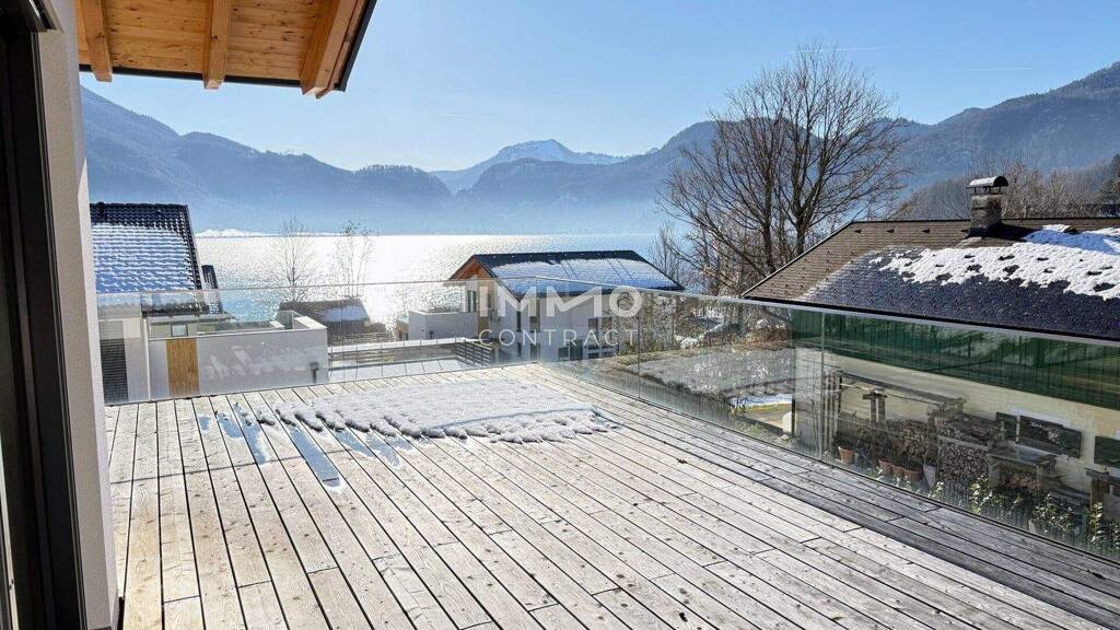 SEE.LEBEN Mondsee - Top 4.3 Penthouse in dritter Reihe mit XL-Terrasse und Seeblick . 95 m² Wohnfläche mit offenem Wohn-/Essbereich . Südseitige 96 m² Terrasse mit Glasgeländer und Blick auf den Mondsee . 3 Schlafzimmer, zentral begehbar - ideal für Familie oder Gäste . 2 Badezimmer (Dusche & Badewanne) . Hochwertige Ausstattung: Echtholzparkett, Fußbodenheizung, Raffstores, BUS-System . Kühlung vorbereitet - modernes Wohnen für jede Jahreszeit . Edle Details: Lärchenholz-Terrassenbelag & großzügige Glasfronten . KFZ-Stellplätze optional erwerbbar . Bezugsfertig ab sofort . Inklusive privatem Seezugang mit Badesteg Ein exklusives Penthouse in dritter Reihe - mit Traumterrasse und einzigartigem Blick.