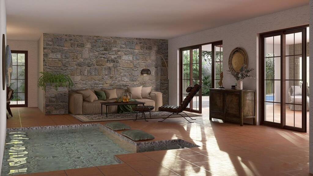 Jede Einheit verfügt über ein lichtdurchflutetes Wohnzimmer mit Zugang zu einer Terrasse mit Meerblick, eine moderne Küche, drei Schlafzimmer und drei Badezimmer sowie Flure und Abstellräume. Das Untergeschoss bietet eine charmante Taverne, einen Keller und Hauswirtschaftsräume, die maximale Funktionalität für komfortables Wohnen gewährleisten.