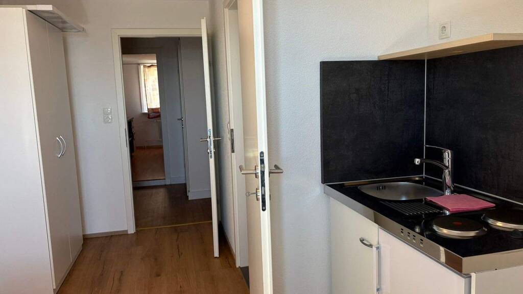 Das Apartment ist auch mit einer praktischen Miniküche mit Stauraum, Abwaschmöglichkeit, Ablagen und Kühlschrank ausgestattet.
