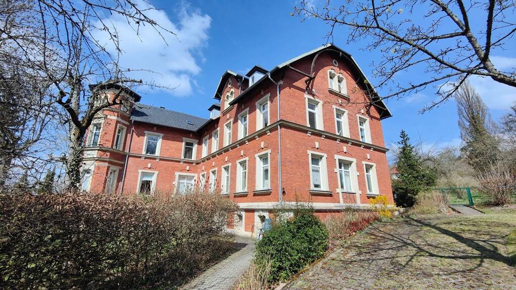Stadtnah und doch im Grünen liegt dieses historische 9-Familien-Haus, erbaut 1895. Die im Hochparterre liegende Wohnung hat neben Flur, sep. WC und Abstellraum vier Zimmer, eine große Küche mit zusätzlichem Platz für einen Essbereich und ein Bad mit Badewanne.