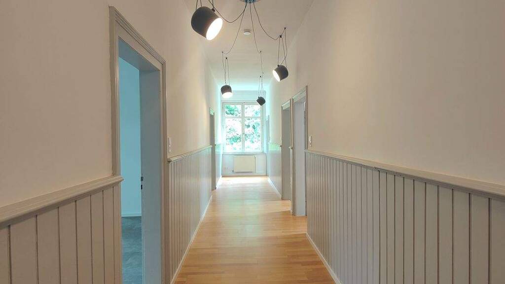 Sie wurde nach Auszug der Mieter aktuell saniert. Hohe Decken, originale Türen und die Lamperie im Flur vermitteln die wunderschöne Atmosphäre eines historischen Altbaus. Ein Teilstück des Gartens steht den Mietern zur gemeinschaftlichen Nutzung zur Verfügung. Zusätzlich gehört ein Kellerabteil zur Wohnung; ein Außenstellplatz kann ebenfalls mit angemietet werden.