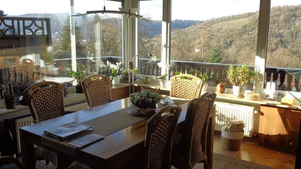 Die Hauptwohnung mit ca. 175m² Wohnfläche: Im Erdgeschoss befinden sich im Eingangsbereich die Garderobe, zwei Zimmer, ein kleines Bad, die Küche sowie das offene Wohn- Esszimmer mit Blick ins Maintal. Von hier gelangt man zudem auf den großen Balkon. Im Dachgeschoss sind dann weitere 4 Schlafzimmer sowie zwei Bäder vorhanden. Zudem verfügt ein Schlafzimmer über einen kleinen Balkon.