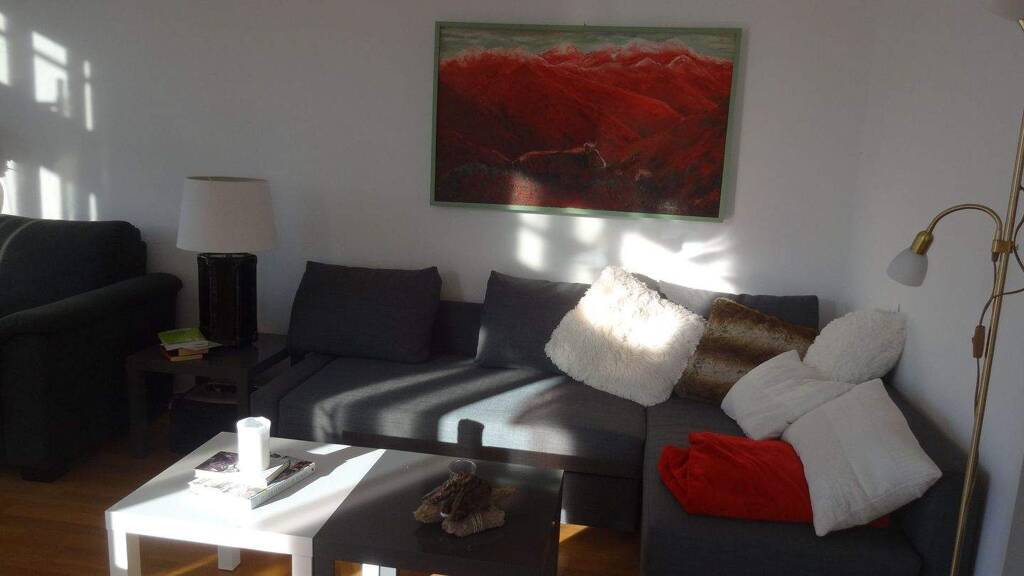 Die Wohnung ist vollmöbliert und mit allen Geräten wie TVs, Internet, Waschmaschine, vollausgestattete Küche, 1 Doppelbett 1.60m, ausziehbare Couch und allen nötigen Utensilien ausgestattet. Ferner besitzt die Wohnung eine umlaufende Terrasse (oberste WG)