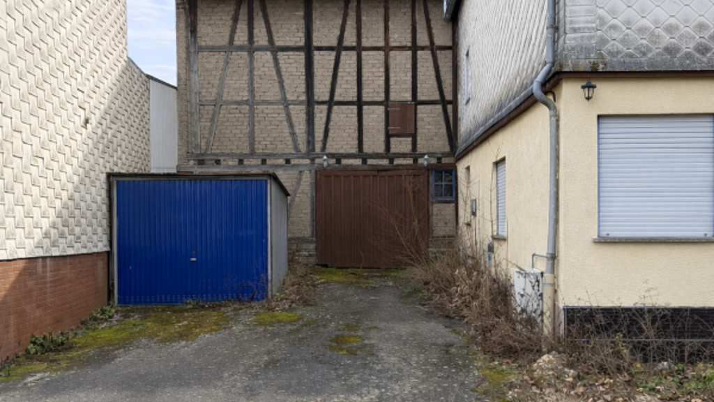 Auf dem großzügigen Grundstück mit einer Fläche von ca. 1.112 m² stehen aktuell mindestens vier Außenstellplätze sowie eine Garage zur Verfügung. Zusätzlich befinden sich ein Stall und Scheunen auf dem Grundstück, die je nach Bedarf abgerissen oder wieder aufgebaut werden können.
