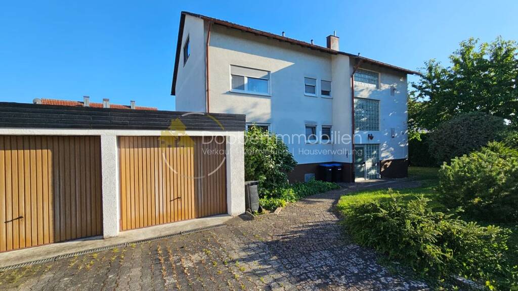 Zur Wohnung gehört zudem eine großzügige Doppelgarage (ca. 25 m²) mit zwei Einfahrten - perfekt für Fahrzeuge, Fahrräder oder als kleine Werkstatt. Weitere Stellplätze befinden sich direkt vor der Garage.
