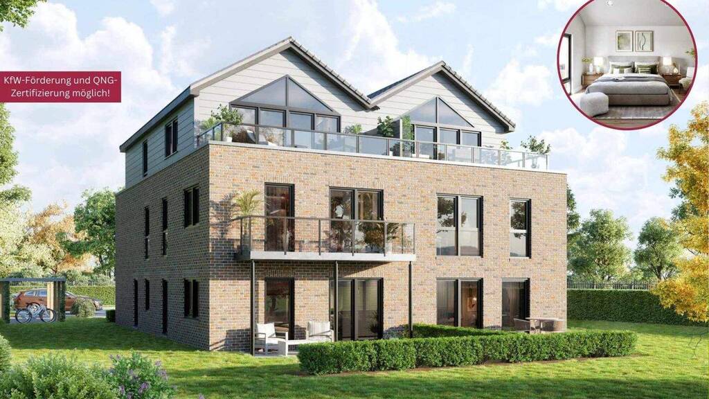 Die QNG-Zertifizierung sowie die KfW-Förderung werden für diesen Neubau angestrebt, wodurch die Immobilie voraussichtlich attraktive Fördermöglichkeiten der KfW Bank sowie steuerliche Vorteile wie die Sonderabschreibung bei Vermietung bieten kann. Die Fahrradräume sind mit stromversorgten Anschlüssen ausgestattet - ideal für E-Bikes oder Lastenräder. Für Kraftfahrzeuge stehen Stellplätze zur Verfügung; ein zentraler, RFID-gesteuerter Ladepunkt ermöglicht gemeinschaftliches Laden. Die Hauseingangstür mit Videogegensprechanlage rundet das Sicherheitskonzept ab. Eine zukunftssichere Investition in nachhaltiges Wohnen, die modernes Leben mit ökologischer Verantwortung vereint.