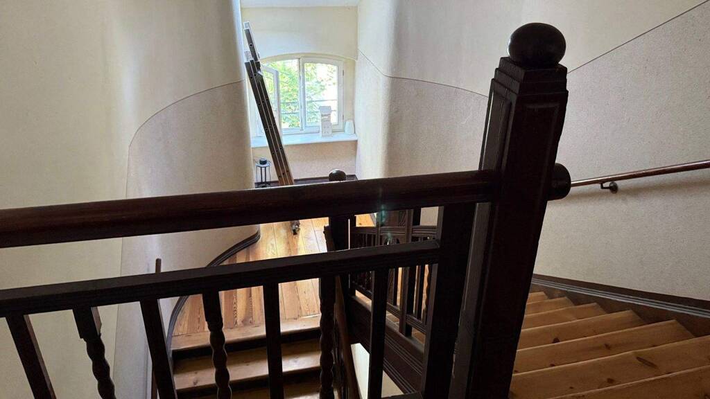 Obere Ebene / Dachraum (ca. 94 m²) / Maisonette: Aktuell vermietet (erzielte JNKM 9.588 €), gut nutzbarer Wohnraum (2006 Saniert) mit großzügigem Schnitt und Kamin im Wohnzimmer. Zu dieser Wohneinheit gelangen Sie über eine abgetrennte Geschosstreppe.