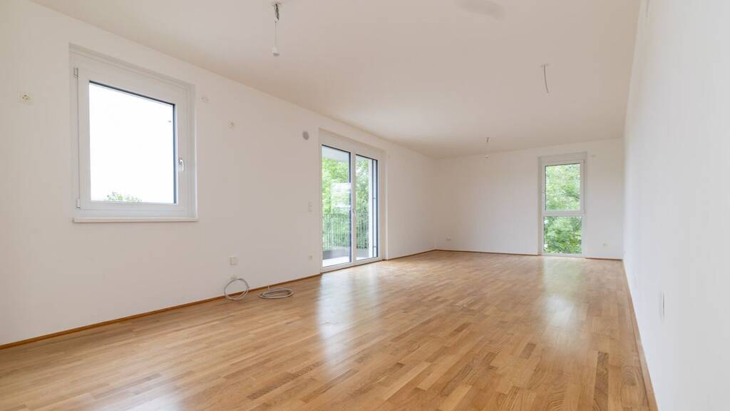 * 33 freifinanzierte Eigentumswohnungen, 42 Tiefgaragenstellplätze und 3 Motorradstellplätze * 55m² - 90m², 2 - 4 Zimmer * alle Wohnungen mit Freifläche in Form von Terrasse und Eigengarten oder Balkon * Raffstores * Parkett * Fußbodenheizung * Tiefgarage: Jeder Wohnung sind 1-2 Stellplätze zugeordnet. Weitere Stellplätze können zusätzlich erworben werden. * ruhige Lage im Grünen * Einlagerungsräume * Fahrrad- und Kinderwagenabstellräume * Waschküchen (nicht ausgestattet) * Kinderspielplatz mit Sitzmöglichkeiten * Müllräume * Photovoltaik am Dach * HWB Wert ca. 31,2kWh/m²a, fGEE ca. 0,66 * sofort beziehbar