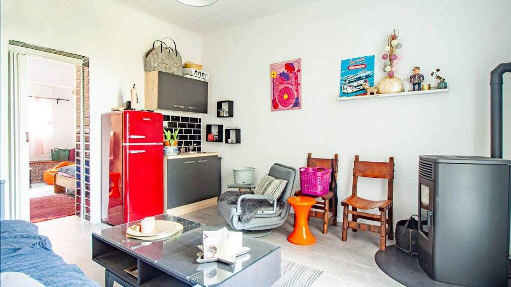 Im Erdgeschoss befindet sich ein 2021 neu gestalteter Wohnbereich, der zuvor als Ladenlokal genutzt wurde. Hier erwartet Sie ein offenes Wohnkonzept mit Küche, Ess- und Wohnbereich sowie direktem Zugang zur Terrasse und in den Garten. Ein Schlafzimmer zur Straßenseite, ein Gäste-WC und ein praktischer Abstellraum ergänzen die Etage. Neue Fenster und eine moderne Terrassentür sorgen für viel Licht. Ein effizienter Pellet-Ofen mit 8 KW schafft gemütliche Wärme.