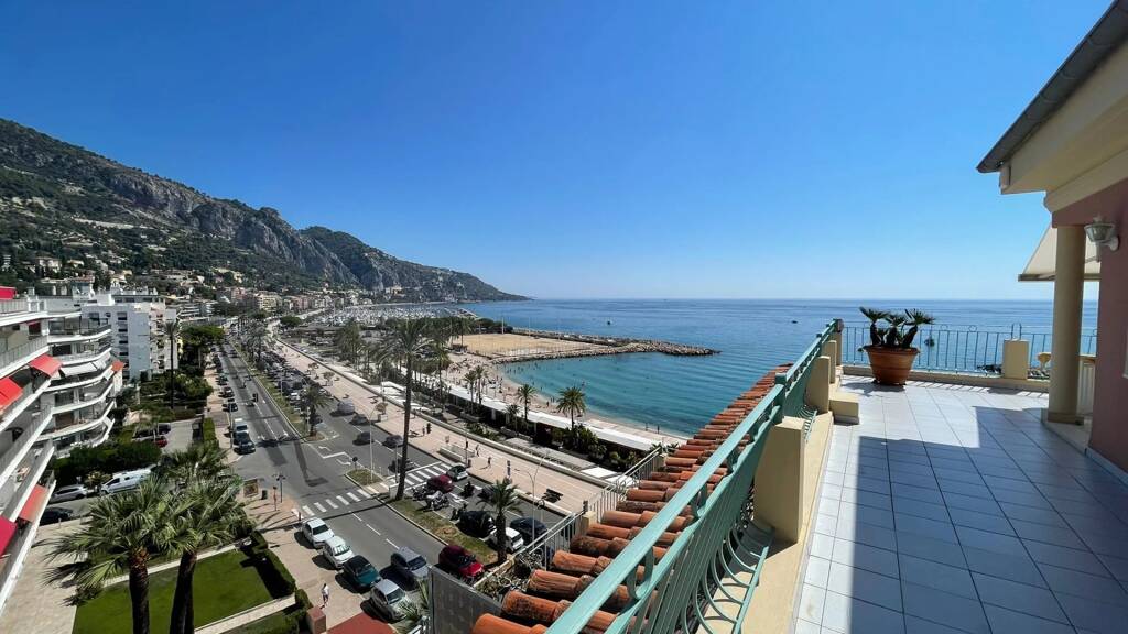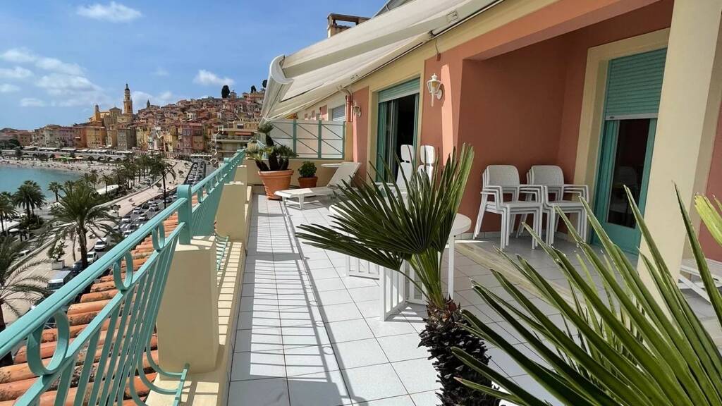 The first apartment has commanding seafront views with a 44 m2 angled terrace, imagine enjoying your morning coffee or savouring a glass of wine in the evening on the magnificent corner terrace, offering breathtaking views of the sparkling sea, the picturesque old town, and even the Italian border. A true living masterpiece to admire at every moment. There is a nice dining area and fully equipped kitchen, perfect for preparing delicious meals.