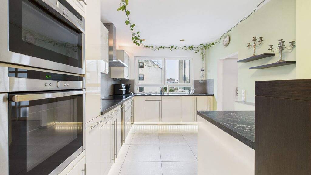 Ein besonderes Highlight ist das zukunftsorientierte Smart-Home-System: Hochwertige Phillips-Hue Beleuchtung in der gesamten Wohnung inszeniert. Indirekte Lichtakzente in der Küche, TV-Ambilight mit Soundreaktion - hier wird Wohnen zum Erlebnis.