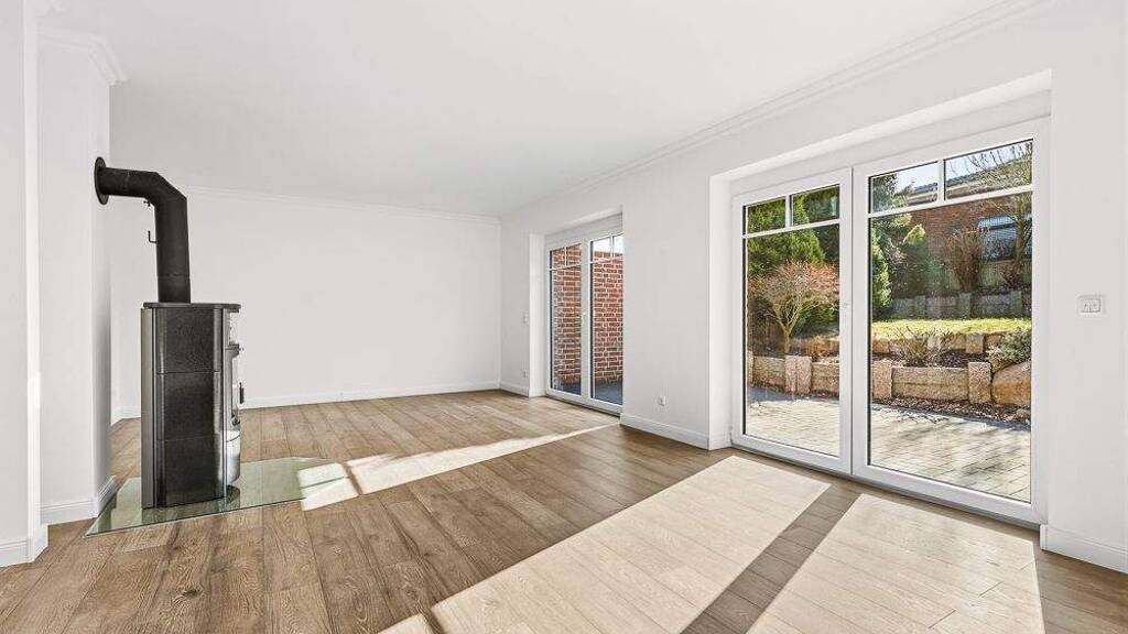 Im Erdgeschoss empfängt Sie ein modernes, offenes Wohnkonzept. Der Wohn- und Essbereich bildet das Herzstück des Hauses und besticht durch großflächige bodentiefe Verglasungen, die für eine besonders helle und freundliche Atmosphäre sorgen. Vom Wohnzimmer aus gelangen Sie direkt auf die großzügige Sonnenterrasse - perfekt für entspannte Stunden im Freien. Ein stilvoller Kaminofen sorgt an kühleren Tagen für zusätzliche Gemütlichkeit. Die offene Küche ist mit Markeneinbaugeräten ausgestattet, bietet viel Stauraum und großzügige Arbeitsflächen.