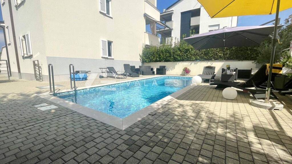 Immobilieninsel Krk, Silo - zum Verkauf steht eine Einzimmer Ferienwohnung mit einer Gesamtfläche von 44 m2 im ersten Stock eines Mehrfamilienhauses mit insgesamt sechs Wohneinheiten. Es besteht aus einem Eingangsbereich, einem Abstellraum, einem Badezimmer, einem Schlafzimmer, einer Küche mit Esszimmer und einem Wohnzimmer mit Zugang zu einer überdachten Terrasse. Die Ferienwohnung wurde im Jahr 2023 renoviert und ist gut ausgestattet und geschmackvoll eingerichtet, sie ist klimatisiert, verfügt über PVC-Tischlerei und ist sofort bezugsfertig. Es verfügt über einen Parkplatz im gemeinsamen Hof des Hauses, Platz in einem gemeinsamen Abstellraum und einen Garten von 15 m2, der Zugang zu einem gemeinsamen Garten mit Swimmingpool hat, der vier Mietern gemeinsam gehört. Es befindet sich in ausgezeichneter Lage, nur 500 m von schönen Stränden und dem Zentrum mit allen Einrichtungen entfernt.