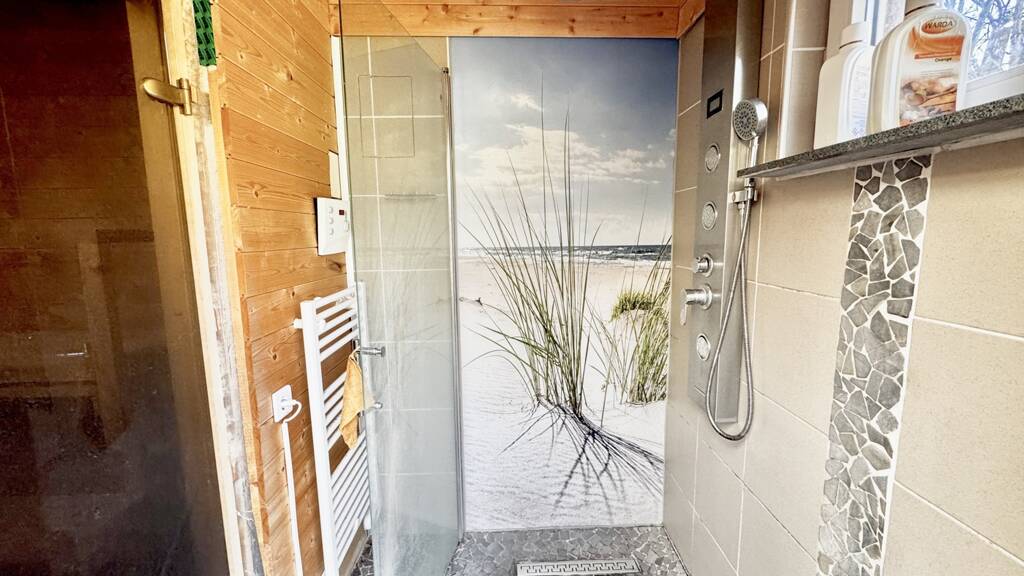 Diese Wohnung ist ca. 68 qm groß und wurde vor einigen Jahren durch einen großzügigen Anbau (Wintergarten) ergänzt. In diesem Wintergarten befindet sich ein Holzkamin und von dort aus gelangen Sie in den hinteren Gartenbereich. Eine Terrasse sowie eine Gartensauna mit Dusche (Baujahr 2022) verzaubert diese Wohneinheit in besonderem Maße. Das Wohnzimmer auf zwei Ebenen, ebenso wie der Schlafraum bieten ein ungewöhnliches und besonderes Wohnerlebnis. Eine Küche sowie ein zeitgemäßes und praktisch ausgestattetes Badezimmer ergänzen diesen Bereich im Erdgeschoss des Hinterhauses.
