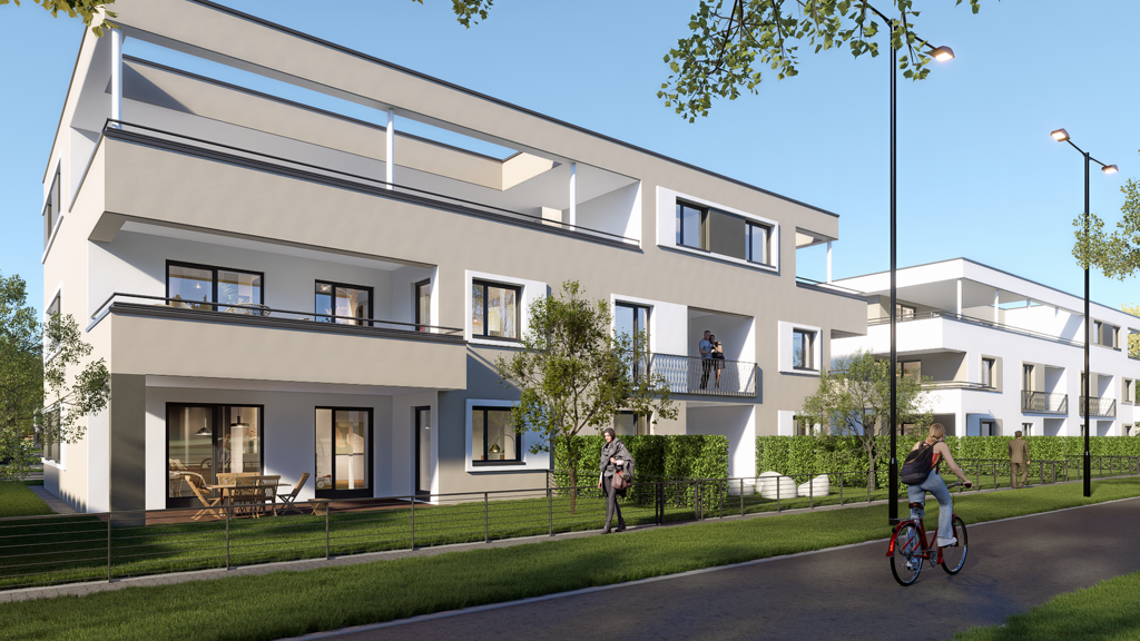 Diese attraktive Neubau-Eigentumswohnung überzeugt durch moderne Architektur und hochwertige Ausstattung und befindet sich in der attraktiven Wohnanlage „Landweid-Village“ Nähe Feldrandlage mit ansprechender Fassade und energieeffizienter Bauweise.