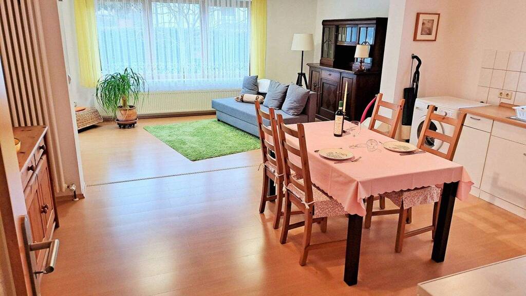 Das Wohnzimmer hat SAT-TV (HD) sowie eine Schlafcouch, die zu einem Bett mit 140x200 cm ausgezogen werden kann. Im Schlafzimmer befindet sich ein Doppelbett (140x200 cm), ein Kleiderschrank und ein Schreibtisch mit Stuhl (zum Beispiel für Homeoffice).