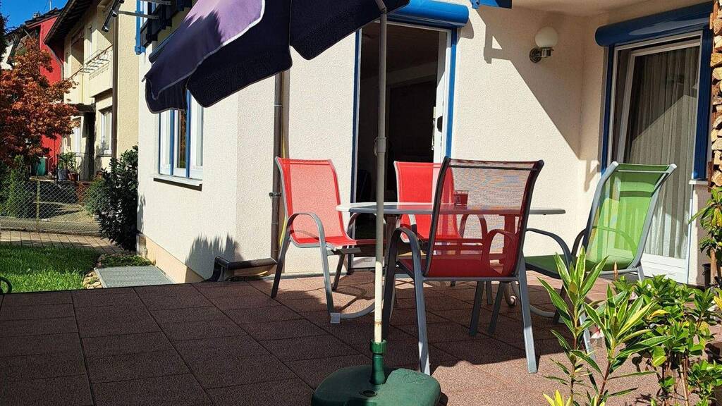 Hier bieten wir Ihnen viel Platz mit 75 qm in einer 2-Zimmerwohnung. Eine schöne Terrasse ist über das Wohnzimmer erreichbar und mit Gartenmöbeln und Sonnenschirm ausgestattet.