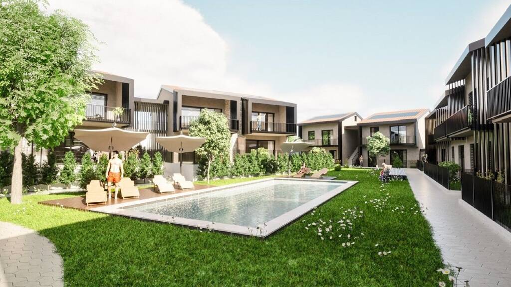 Ein gemeinschaftlich nutzbarer grüner Bereich sowie ein elegant gestaltetes Schwimmbad verleihen der Anlage ein besonderes Flair und laden zum Verweilen ein. Die Immobilien entsprechen der Energieklasse A4, wodurch die laufenden Betriebskosten auf ein Minimum reduziert werden – energieeffizient und nachhaltig zugleich.