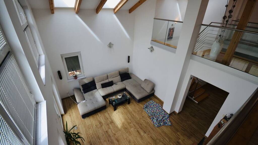 Ein Highlight sind die großflächigen Fenster und die stilvolle Galerie, die dem Haus eine offene, lichtdurchflutete Atmosphäre verleihen und den Wohnraum elegant vergrößern.