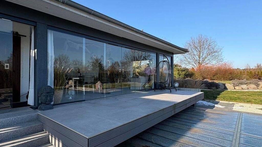 Located in one of the most sought-after residential areas of Michendorf-Wildenbruch, this exceptional building plot presents a rare opportunity for sophisticated living directly adjacent to the Seddiner See Golf and Country Club. The clubhouse with restaurant is within walking distance, as is Lake Seddiner See, which invites you to take walks and relax in natural surroundings. Golf enthusiasts benefit from two renowned 18-hole championship courses right on their doorstep. The fully developed property impresses not only with its exclusive location, but also with its existing high-quality ancillary facilities, such as a heated double garage, an elegant saltwater pool, and a stylish pool lounge, which promise the highest quality of life. Nestled in a quiet, natural environment, this property combines privacy, relaxation, and a first-class Frisian living environment, the ideal place to realize your individual dream home at the highest level.