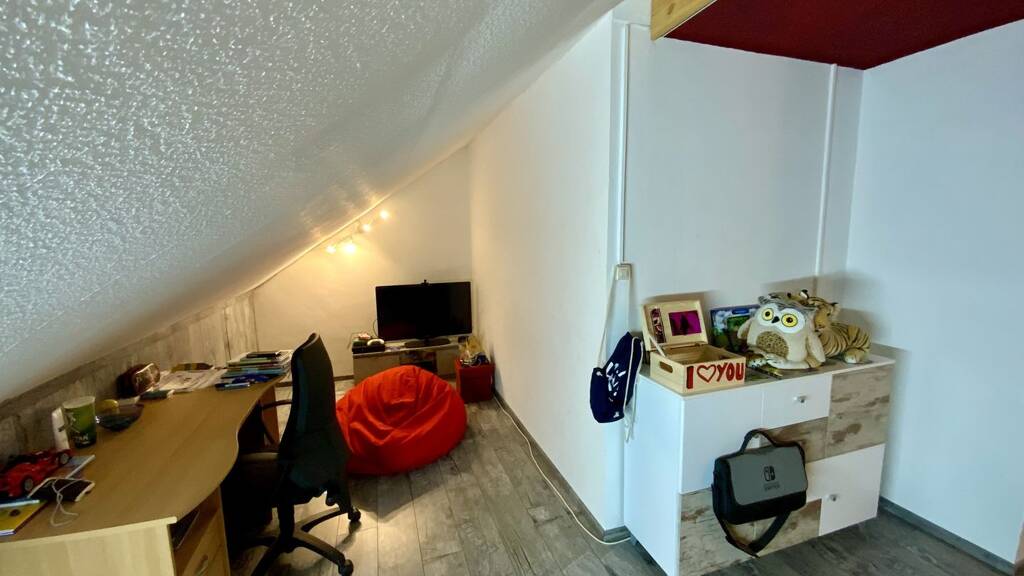 Im Obergeschoss finden Sie 3 Zimmer und ein weiteres Badezimmer vor. Im Dachgeschoss befindet sich ein weiteres Zimmer, das als zusätzliches Kinderzimmer oder Gästezimmer genutzt werden kann.