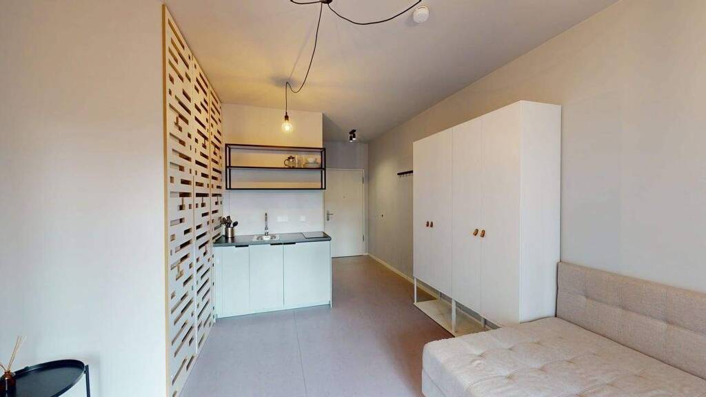 Die angebotene möblierte 1-Zimmer-Wohnung überzeugt durch einen durchdachten Grundriss und eine funktionale, stilvolle Ausstattung. Der kombinierte Wohn-, Schlaf- und Essbereich ist optimal genutzt und schafft eine helle, angenehme Wohnatmosphäre. Große Fenster sorgen für Tageslicht, während die Möblierung ein sofortiges Einziehen ohne zusätzlichen Aufwand ermöglicht. Das Badezimmer ist modern ausgestattet und rundet das kompakte Wohnkonzept komfortabel ab.