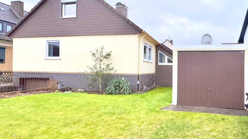 Dieses gepflegte Einfamilienhaus (OKAL Typ 92) zeigt seinen wahren Charme erst auf der Gartenseite mit einem attraktiven Wintergartenanbau sowie einem liebevoll gestalteten Garten - die Straßenfront präsentiert sich eher zurückhaltend. Das Haus befindet sich in schöner, ruhiger Wohnlage von Kirchohsen und wurde im Jahre 1965 in solider Holzrahmenbauweise auf einem massiven Kellergeschoss errichtet. Es verfügt im Erdgeschoss über einen geräumigen Wohn-/ Essbereich, der durch einen Anbau mit einer gemütlichen Sitzecke - belichtet durch großflächige Dachflächenfenster - erweitert wurde, sowie ein weiteres Zimmer, eine Küche, ein Bad und ein Gäste-WC. Ein geräumiger, stattlicher Wintergarten mit großzügiger Verglasung und davorliegender Terrasse ist ebenfalls neueren Datums. Das Dachgeschoss wurde im Jahre 1973 ausgebaut und beherbergt zwei Zimmer und ein Bad. Das Haus ist vollständig unterkellert und mit einer Außentreppe ausgestattet. Im Untergeschoss befindet sich neben den üblichen Räumen auch eine Garage mit direktem Hauszugang. Zusätzlich wurde auf dem Grundstück noch eine Einzelgarage errichtet. Das hell und freundlich wirkende Haus befindet in einem gut gepflegten Zustand. Im Keller sollten Feuchteerscheinungen behoben werden. Das schön eingewachsene Grundstück ist abwechslungsreich bepflanzt. Hier findet man neben aufwändig gepflasterten Wegeflächen auch einen Freisitz mit Pergola sowie ein weiteres Nebengebäude (ehemaliger Hundezwinger) und einen großen Gartenteich.