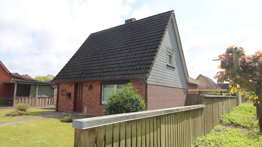 Zum Haus gehört eine Garage mit einem elektrisch betriebenen Sektionaltor. Der Garten ist pflegeleicht angelegt und bietet überwiegend Rasenfläche – ideal für entspannte Stunden im Grünen, ohne großen Pflegeaufwand.