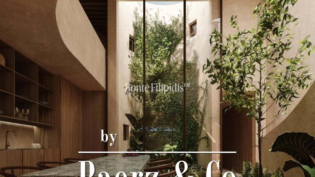 on the ground floor, a central courtyard with double height ceilings allows abundant natural light and ventilation to enter. natural materials, such as wood, clay and stone, reinforce the feeling of warmth and timelessness. outside, the private garden with swimming pool and the large outdoor seating areas were designed for moments of rest, contemplation and connection to the surrounding nature.