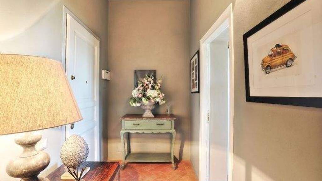 Sehr charmante luxuriöse Wohnung (1.OG), im Dorfkern (Borgo) von Castelfalfi. Die Wohnung ist ca. 90 m² groß und verfügt über eine Terrasse/Loggia (ca. 11 m²) die eine herrliche Aussicht bietet über die toskanischen Hügel. Die Wohnung verfügt über zwei Schlafzimmer und zwei Badezimmer im Erdgeschoß. Eine Treppe führt zum großzügigen, gemütlichen Wohn/Essbereich mit gut ausgestatter Küche. Der Wohnbereich bietet noch die Möglichkeit für einen weiteren Schlafplatz. Das dritte Badezimmer befindet sich auch in diesem Bereich. Die große Terrasse/Loggia bietet herrliche Aussichten über den Pool, den Olivenbäumen und den toskanischen Hügeln.