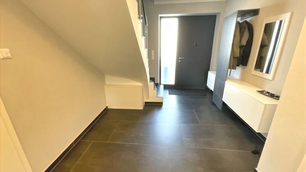 Willkommen in Ihrem neuen Zuhause! Dieses moderne Einfamilienhaus wurde 2019 für den Eigenbedarf auf einem Grundstück von ca. 686 m² errichtet. Mit rund 220,43 m² Wohnfläche sowie zusätzlichen 46,43 m² Nutzfläche bietet es großzügige Möglichkeiten für Familienleben und persönliche Gestaltungsideen. Fußbodenheizung und elektrische Jalousien sorgen für angenehmen Wohnkomfort. Der Mittelpunkt des Hauses ist das helle und gemütliche Wohn- und Esszimmer. Angrenzend befindet sich die Küche mit Kochinsel. Im Eingangsbereich mit Gäste-WC und Garderobe führt Sie eine elegante Granittreppe ins Dachgeschoss. Dort erwarten Sie ein Zimmer mit praktischer Ankleide, drei weitere flexibel nutzbare Zimmer, ein komfortables Vollbad mit zwei Waschtischen, begehbarer Dusche und Badewanne sowie ein möblierter Hauswirtschaftsraum - ideal für den strukturierten Familienalltag. Von der überdachten Terrasse genießen Sie einen schönen Blick in Ihren Garten - einen Ort, an dem Ihre Kinder nach Herzenslust spielen und Sie zur Ruhe kommen können. Neben dem Wohnhaus befinden sich eine Garage mit Geräteraum sowie ein separater Heizungsraum. Die Einliegerwohnung verfügt über einen offen gestalteten Wohn-, Ess- und Kochbereich mit direktem Zugang zu einer eigenen überdachten Terrasse. Ein Vorratsraum sorgt für zusätzliche praktische Staufläche. Vom Eingangsbereich aus erreichen Sie das Schlafzimmer, das Duschbad und den Abstellraum. Zur Einliegerwohnung gehört außerdem eine Carportanlage mit Geräteraum.
