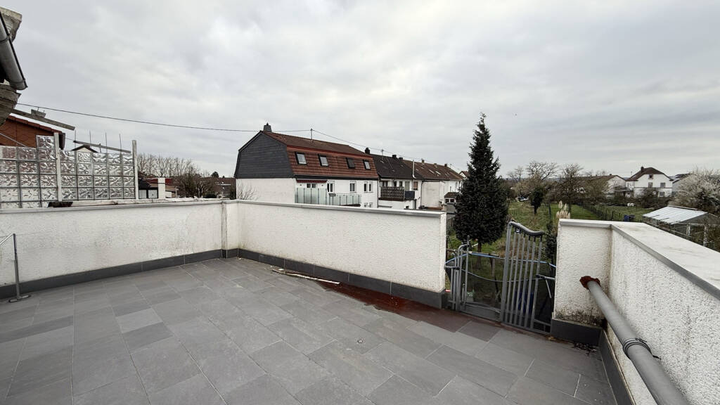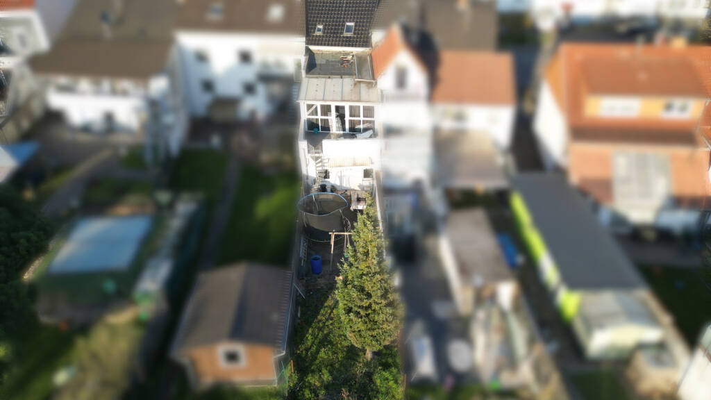 Obergeschoss: Im Obergeschoss erstreckt sich über 2-Etagen eine Maisonette-Wohnung mit insgesamt 4 Zimmern, sowie Balkon & Terrasse. Über den separaten Wohnungseingang gelangen Sie in den großzügigen Essbereich, an welchen sich rechts die Küche und links das Wohnzimmer anschließen. Neben der Küche befindet sich ein Gäste-WC. An das Wohnzimmer schließt sich ein Balkon. Auf der anderen Seite schließt sich an die Küche eine Art Wintergarten mit Terrasse an.