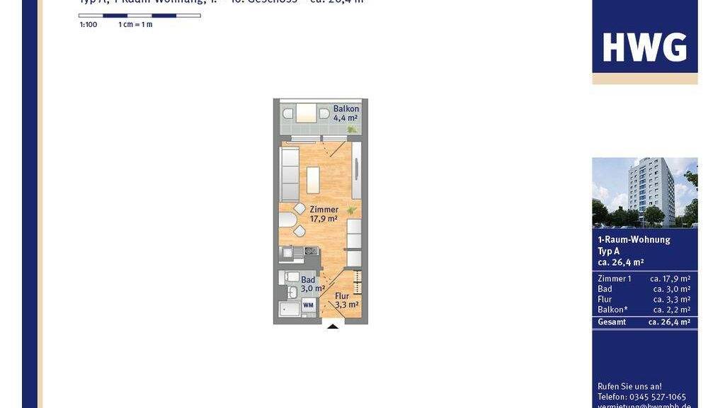 1 Zimmer • 26,3 m² • 1. Geschoss • frei ab 15.05.2026