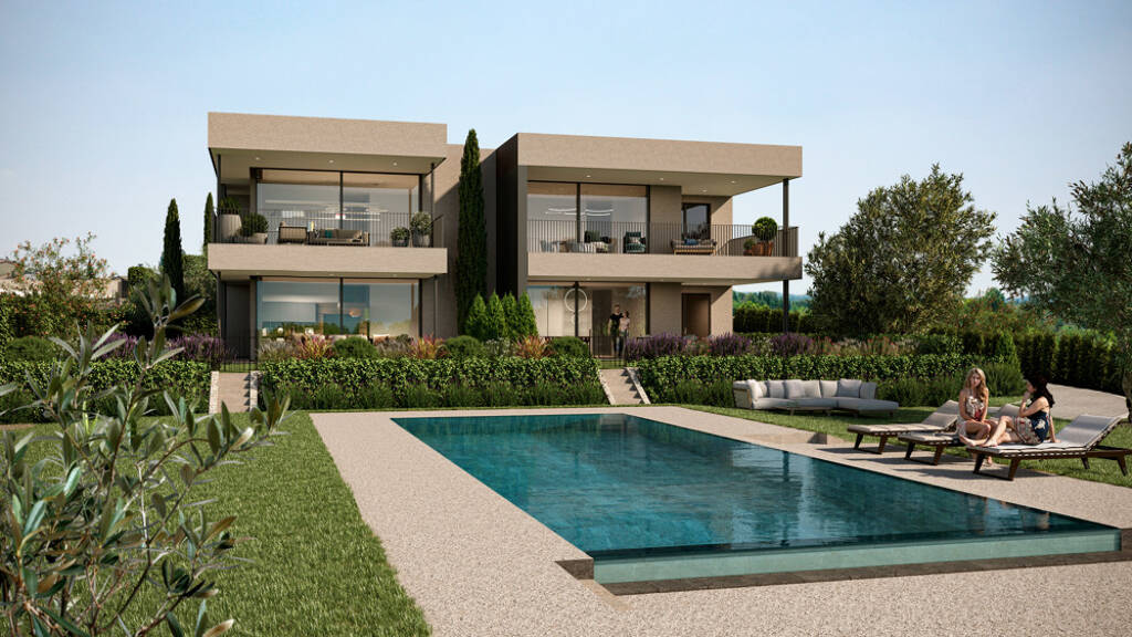 Vier Häuser mit jeweils vier Wohnungen und Gemeinschafts-Pool in einer großzügig gestalteten Anlage. Eine hochwertige Ausführung und ein zeitloses modernes Design machen die Immobilie zu einer ganz besonderen Residence. Es stehen verschiedene Wohnungen mit großer Terrasse oder Privatgarten zum Verkauf. Die überdachten Sonnenterrassen halten jeden Komfort bereit und bieten das perfekte Ambiente, um entspannte Stunden und das wunderbare Klima vom Gardasee zu genießen.