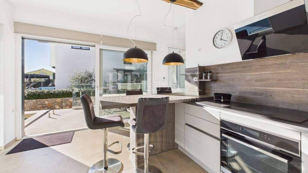 In Njivice, an einer attraktiven Lage nur 500 Meter vom Meer und 300 Meter vom Ortszentrum entfernt, steht eine luxuriöse Maisonette-Wohnung mit Pool und gepflegtem Garten zum Verkauf. Diese im Jahr 2022 erbaute Immobilie bietet hohen Wohnkomfort, hochwertige Bauweise und erstklassige Ausstattung.