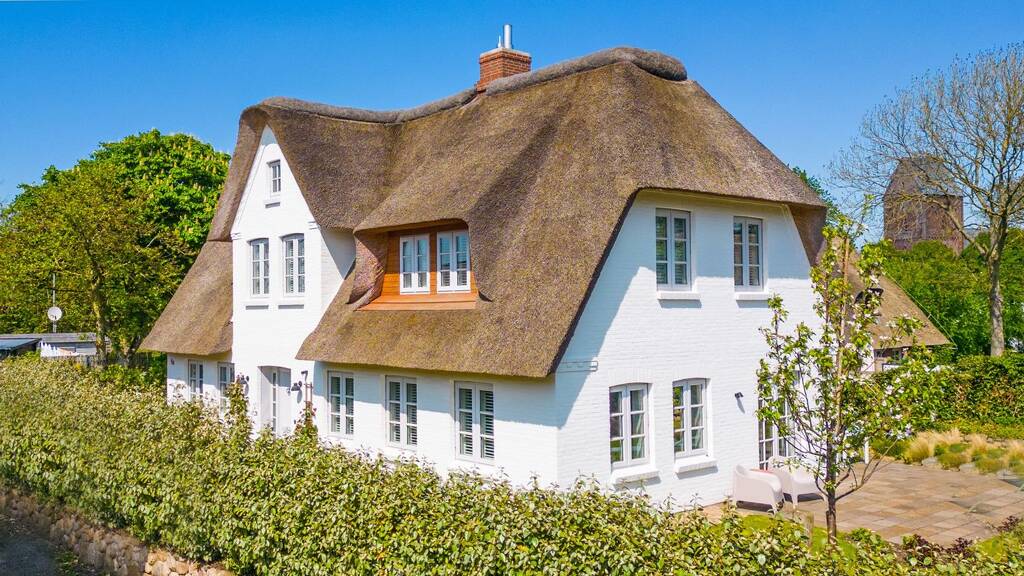 Inmitten von Nieblum, mit Blick auf die St. Johannis Kirche erhebt sich dieser "Traum in Weiß": Ein Reetdachhaus zum Wohnen, Zweitwohnen und als Ferienhaus, Baujahr 2022, das von einer insularen Innenarchitektin mit viel Esprit und Geschick ausgestattet worden ist. Das strahlend weiße Äußere und das charakteristische Reetdach unterstreichen den Anspruch an eine Immobilie erster Klasse. Das blickgeschützte und mit bedacht angelegte Grundstück wird von einem klassischen Friesenwall umrahmt. Im Inneren erwartet Sie ein tolles, helles und modernes Ambiente. Im Erdgeschoss erwarten Sie große, offene Räume, ein Kamin, hochwertige Materialien, eine perfekt sitzende Möblierung und Zugang zur großen Terrasse. Ein Gäste-WC und ein Hauswirtschaftsraum komplettieren die Etage. Im Dachgeschoss befinden sich insgesamt drei Schlafzimmer, eines davon mit Bad en Suite und Sauna sowie ein weiteres Duschbad. Zum Angebot gehören hochwertige Tischlereinbauten, Fußbodenerwärmung im gesamten Erdgeschoss und den Bädern, ein eigener PKW-Stellplatz und ein charmantes Gartenhaus, ebenfalls unter Reet.