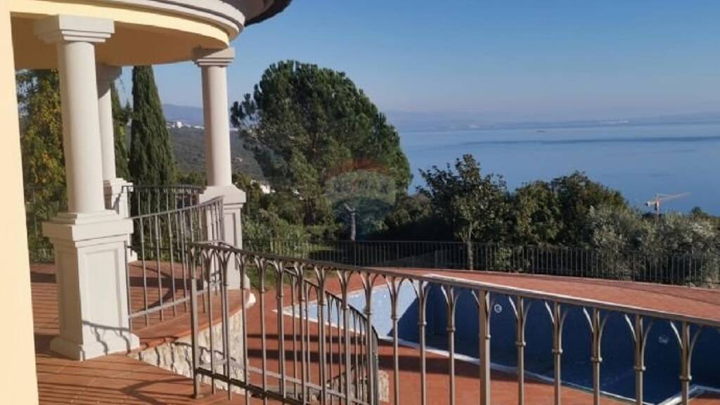 Der Außenbereich bietet einen Pool mit fantastischem Panorama Blick auf das Meer sowie die Inseln Krk, Cres und Opatija.