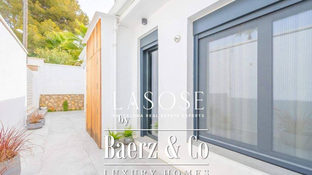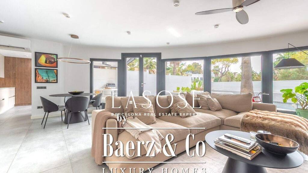lasose is delighted to present an exceptional villa in the residential area of sitges - vallpineda. fully renovated and thoughtfully redesigned, this elegant single-storey home with 2 bedrooms and 2 bathrooms is the perfect retreat for those seeking comfort, style and tranquillity in one of the most desirable family neighbourhoods in sitges.. surrounded by tall palm trees and abundant natural light, the property offers a genuine oasis of well-being and privacy. the architecture and landscaping have been carefully conceived to create a serene atmosphere, with open views and a seamless integration between indoor and outdoor spaces.. the heart of the home is the spacious open-plan living and dining area. large floor-to-ceiling windows flood the space with light and open directly onto the garden, enhancing the sense of space and creating a perfect connection with the terrace and pool. this is the ideal setting for relaxing with family, entertaining guests or simply enjoying the beauty of the mediterranean climate.. the modern kitchen, equipped with high-quality finishes and appliances, is directly connected to the living area and offers access to a charming summer dining space. this covered outdoor area is perfect for long dinners al fresco, weekend brunches or evenings with friends, all while overlooking the pool and garden.. the night area has been designed to offer maximum comfort and privacy. the primary suite features a designer bathroom and a generous dressing area, providing a refined and tranquil retreat. a second double bedroom enjoys access to a full bathroom, making it ideal for family members or guests.. the outdoor spaces are both practical and attractive. at the back of the house, a functional service terrace includes a water area, storage solutions and space for appliances, ensuring day-to-day convenience without compromising aesthetics. the private swimming pool is framed by an elegant terrace, offering areas for sunbathing, relaxing and enjoying outdoor living throughout the year.. for year-round comfort, the villa is equipped with hot and cold air pumps in all rooms. the recent renovation has been carried out using high-quality materials and a timeless, modern design. double-glazed windows and gradhermetic adjustable blinds provide excellent thermal and acoustic insulation, enhancing energy efficiency and comfort. every element, from the lighting to the finishes, has been carefully selected to create a harmonious and sophisticated environment.. the property also includes a large garage located in a nearby building, with a custom-made storage area, providing ample space for vehicles, bicycles and additional belongings.. living in vallpineda means enjoying the advantages of a private residential community just minutes from sitges. as an owner, you will have free access to the club's swimming pool and the option to use additional facilities such as paddle and tennis courts, as well as a gym with a reduced fee. the area is very quiet, with an atmosphere ideal for families, and at the same time offers excellent connections to the town centre and the c-32 motorway, making it easy to reach barcelona and the airport.. its proximity to sitges allows you to enjoy magnificent beaches, a vibrant cultural scene and an extensive gastronomic offering. this villa is an outstanding opportunity for those who wish to buy a home ready to move into, combining contemporary design, comfort and an exceptional location on the mediterranean coast.