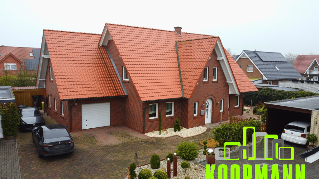 Dieses großzügige Einfamilienhaus aus dem Jahr 1999 präsentiert sich auf einem 705 m² großen Grundstück in einer ruhigen Sackgassenlage einer gewachsenen Siedlung – zentral gelegen im beliebten Molbergen. Mit einer Wohnfläche von ca. 218 m² bietet die Immobilie viel Raum für Familien, die Wert auf Komfort, Platz und eine gepflegte Umgebung legen. Schon beim Betreten überzeugt der helle, weitläufige Eingangsbereich, der nahtlos in das großzügige Wohn- und Esszimmer übergeht. Große Fensterflächen sorgen für eine angenehme Lichtdurchflutung und schaffen eine einladende Wohnatmosphäre. Ein gemütlicher Ofen im Wohnbereich verleiht dem Raum zusätzlichen Charme und sorgt in den kühleren Monaten für wohlige Wärme. Ergänzend ist das Wohnzimmer, ebenso wie Küche und Bad, mit einer Fußbodenheizung bzw. Rücklauferwärmung ausgestattet. Die Einbauküche ist im Kaufpreis enthalten und bietet alles, was Hobbyköche benötigen. Vom Wohn- und Essbereich aus gelangen Sie direkt auf die Außenterrasse sowie die angrenzende überdachte Terrasse. Beide Bereiche bieten einen schönen Blick auf den gepflegten Garten, der sich ideal für Familien, Gartenfreunde oder gemütliche Stunden im Freien eignet. Im Obergeschoss überzeugt das Haus mit einem Elternschlafzimmer inklusive separatem Ankleideraum sowie drei weiteren Schlafzimmern – perfekt für Kinder, Gäste oder ein Homeoffice. Das große Familienbad mit zwei Waschtischen, Dusche und Badewanne bietet viel Raum für die gesamte Familie. Der Dachboden ist über eine feste Holztreppe erreichbar und bietet hervorragende Ausbaureserven – ideal für zusätzliche Wohn- oder Arbeitsräume. Zum Haus gehört eine Garage mit integriertem Geräteraum. Hinter der Garage befindet sich zudem ein praktischer Holzschuppen, der sich perfekt als Lagermöglichkeit für Kaminholz anbietet. Die Gasheizung wurde erst im Jahr 2022 erneuert und sorgt für eine energieeffiziente Wärmeversorgung. Dank der ruhigen Sackgassenlage und der dennoch zentralen Anbindung innerhalb Molbergens ist dieses Haus die ideale Kombination aus Familienfreundlichkeit, Komfort und Alltagstauglichkeit.