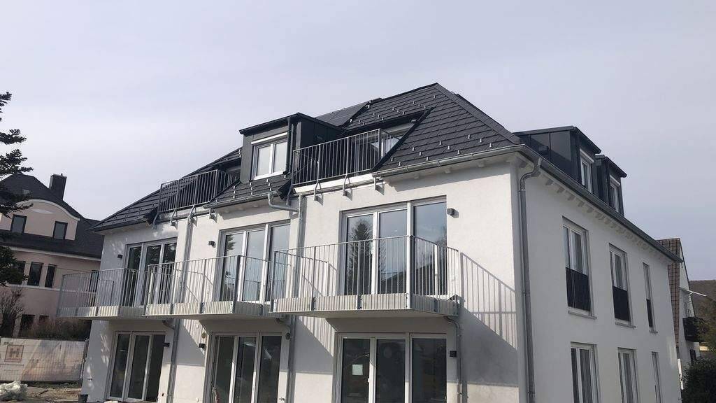 Süd - Dachterrasse. Die Ausstattung ist insgesamt absolut hochwertig: Vinylböden, Bad mit Fenster und Dusche , sep. Hauswirtschaftsraum mit Waschmaschinen-Anschluß. Fußbodenheizung, großformatiges Feinsteinzeug, Dreifach- Fensterverglasung, Sanitärausstattung von namhaften Marken- Herstellern, Rolläden Videogegensprechanlage...