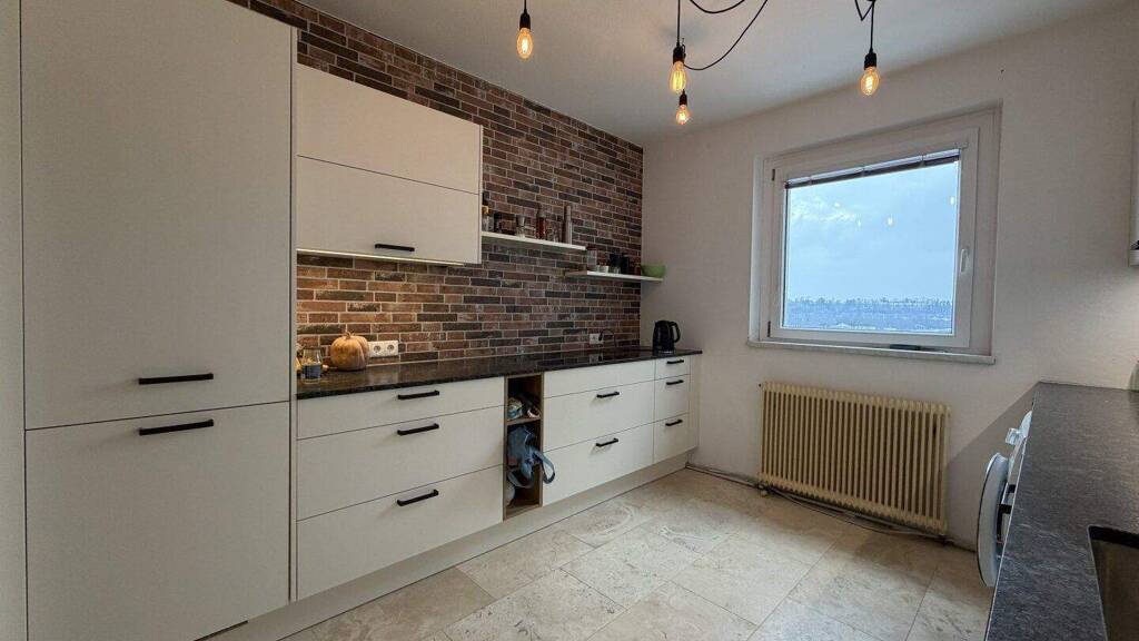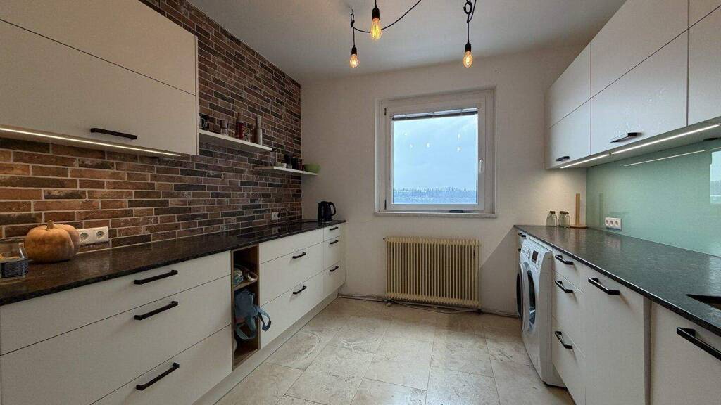 Fliesen und Laminatböden sorgen für ein modernes Ambiente und sind gleichzeitig pflegeleicht. Die Einbauküche ermöglicht Ihnen, kulinarische Köstlichkeiten zu zaubern und dabei den Blick über die Stadt zu genießen.