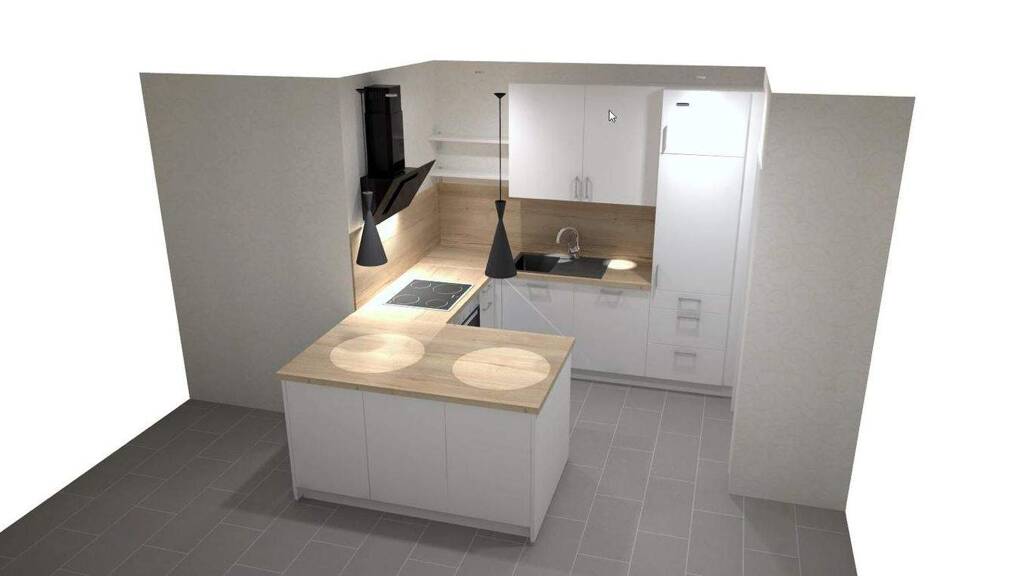 Der offene Wohn- und Essbereich mit integrierter Einbauküche bildet das Herzstück der Wohnung und schafft eine einladende, helle Atmosphäre.
