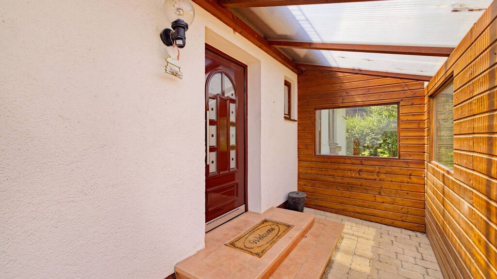Ergänzend bietet das Haus einige durchdachte Details, die den Wohnkomfort zusätzlich erhöhen. So schützt ein überdachter Eingangsbereich vor Wind und Wetter und schafft einen einladenden Zugang zum Haus. Eine separate Garage bietet Platz für Ihr Fahrzeug oder zusätzlichen Stauraum. Für Pflanzenliebhaber steht ein unterkellertes Treibhaus zur Verfügung, das sich ideal für die Aufzucht von Blumen oder Gemüse eignet. Außerdem liegt auf dem Grundstück ein besonders geeigneter Bereich für ein Gemüsebeet - perfekt für alle, die Freude an der Selbstversorgung und Naturverbundenheit haben.