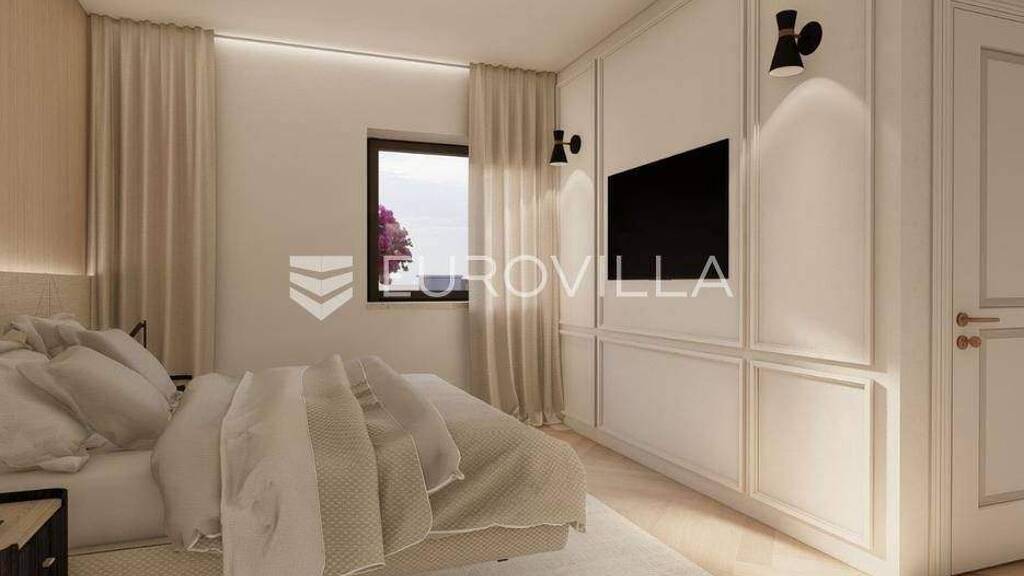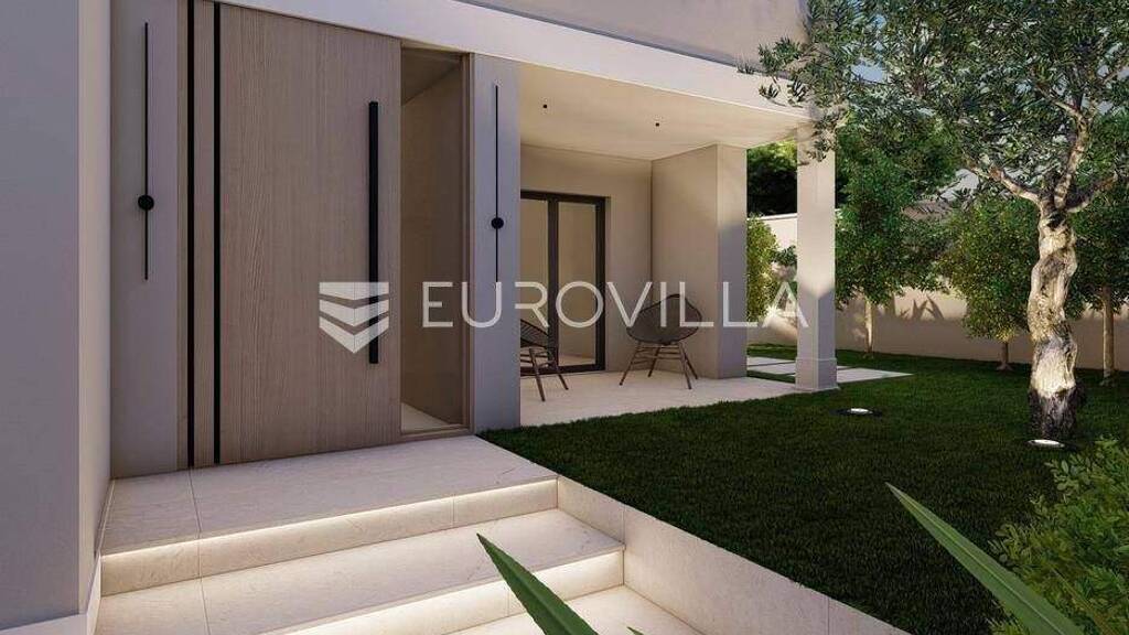 U prestiznom i mirnom dijelu Zadar, u naselju Diklo, smjestena je ova ekskluzivna moderna vila u prvom redu do mora, koja objedinjuje vrhunsku arhitekturu, funkcionalan raspored i jednu od najtrazenijih mikrolokacija na zadarskom podrucju.Novogradnja iz 2025. godine prostire se na 246 m² stambene povrsine, na parceli od 749 m², s uredenom mediteranskom okucnicom i maslinikom. Vila je udaljena svega 5 metara od mora te pruza otvoren, neometan pogled na more i zalaske sunca. Orijentacija istok-jug-zapad osigurava obilje prirodne svjetlosti tijekom cijelog dana.Raspored:Prizemlje obuhvaca ulazni prostor, tri komforne spavace sobe - svaka s vlastitom kupaonicom, loggiu, natkrivenu terasu, veseraj te dodatnu multifunkcionalnu prostoriju idealnu za teretanu, ured ili prostor za rekreaciju.Unutarnjim stubistem dolazi se na prvi kat, gdje se nalazi prostran i svijetao dnevni boravak povezan s kuhinjom i blagovaonicom, master spavaca soba s walk-in garderobom za nju i njega te vlastitom kupaonicom, zaseban toalet i velika terasa s panoramskim pogledom na more.Vanjski prostor:Poseban naglasak stavljen je na vanjski dio vile - bazen povrsine 49 m², jacuzzi, uredeni vrt s maslinikom, grill zona, vanjski sanitarni cvor te zatvoreni multifunkcionalni prostor od 20 m² koji se moze koristiti kao wellness, spa, gym ili radni prostor.Vila je opremljena smart home sustavom, pruzajuci visoku razinu udobnosti i sigurnosti.Projektirana s pripremom za ugradnju solarnih panela (fotonaponski sustav), uz predvidenu infrastrukturu za buducu instalaciju.Nekretnina omogucuje parkiranje cetiri vozila, uz predvidenu instalaciju prema izboru vlasnika za ugradnju punionica za elektricna vozila.Diklo je poznat po uredenim sljuncanim plazama, iznimnoj cistoci mora i mirnom okruzenju, a istovremeno se nalazi u neposrednoj blizini svih sadrzaja grada. Zracna luka Zadar udaljena je priblizno 15 km.Ova nekretnina predstavlja rijetku priliku na trzistu - savrsena kao privatna rezidencija ili luksuzna investicija za odmor i najam.Za dodatne informacije i dogovor oko razgledavanja, stojimo na raspolaganju.... Vise na eurovilla.hr, ID: 741125