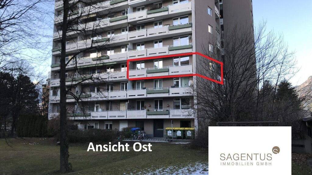 Ca. 91 m2 große und gut eingeteilte 3-Zimmer-Wohnung mit separater Küche und 2 Balkonen (Ost und Nord) in der Innsbrucker Schützenstraße ab sofort zu kaufen.